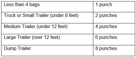 The commercial punch card will allow for the disposal of bagged domestic garbage only, all other commercial debris will be charged in accordance with the tipping fees indicated below.