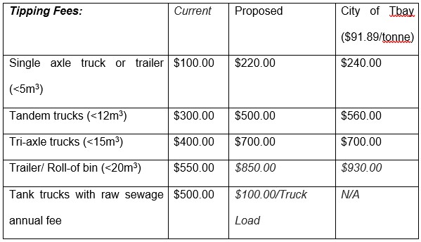 Operating a municipal landfill site is a significant and ongoing financial responsibility. Beyond the visible day-to-day activities of managing waste, there are substantial costs associated with regulatory compliance, environmental monitoring, leachate management, equipment procurement and maintenance, staffing, fuel, insurance, reporting to the Ministry of the Environment, and long-term closure and post-closure care. While it is appropriate that a portion of these costs be supported through the general tax base there is a strong rationale for aligning a greater share of operating costs with tipping fees. A user-pay approach ensures that those who generate and dispose of more waste contribute proportionately to the cost of managing it, promoting fairness, financial sustainability, and responsible waste reduction practices.
